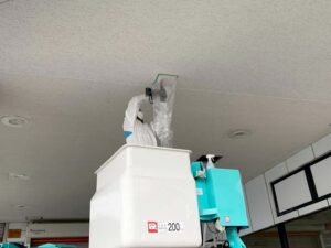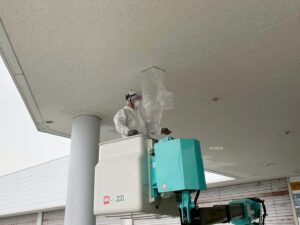 1ヵ所は店舗入り口部分、養生をして配線のために穴をあけています。